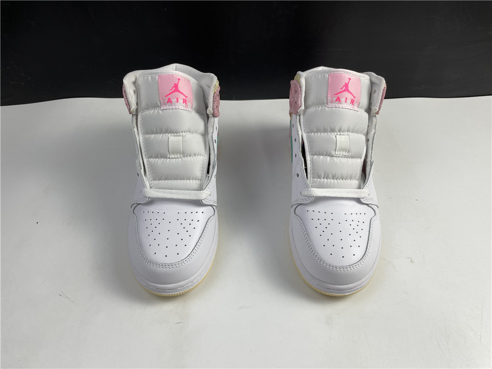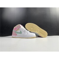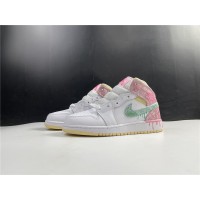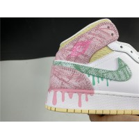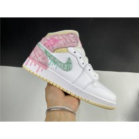 The Air Jordan 1 Mid Paint Drip (GS) brings out a more playful side to the Jordan 1 Mid series. The grade-school exclusive Air Jordan 1 Mid Paint Drip features paint dripping details that start on the upper and lead down to the midsole. A mix of pink and mint green paint-textured leather uppers lay atop of white leather underlays. The collar of the mid-top sneaker is home to a muted yellow textile material.